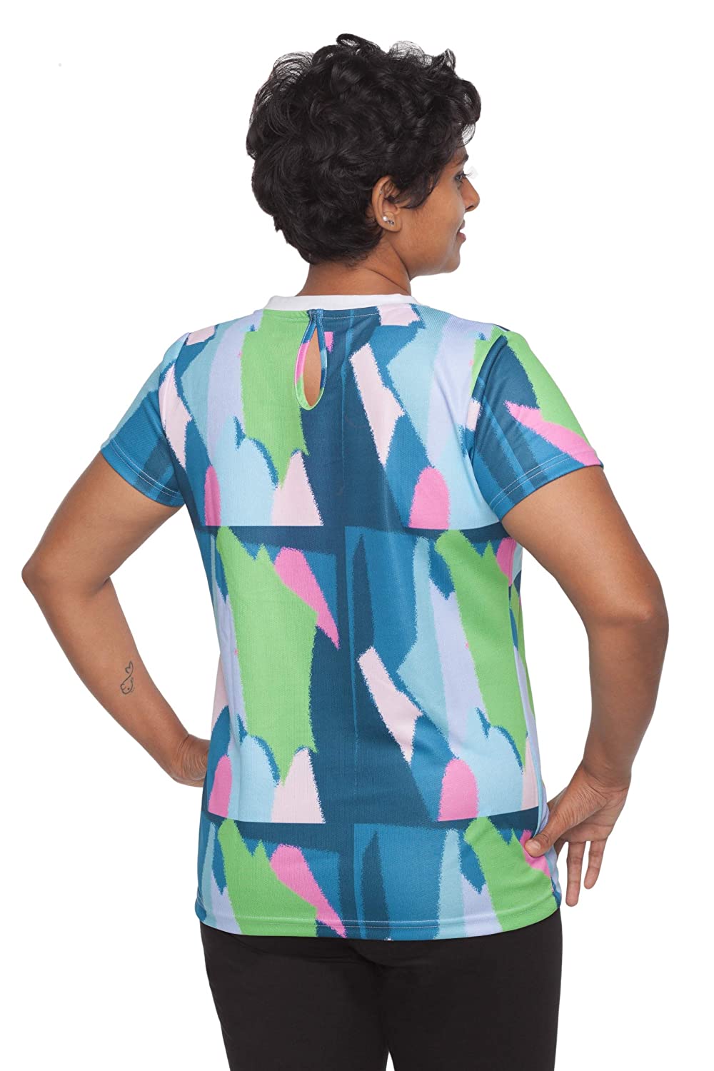 Uhane Women’s Gym Dri-Fit Work-Out Deep V-Neck T-Shirt (Multi-Coloured) Short Sleeves Patterned Top for Sports and Fitness
