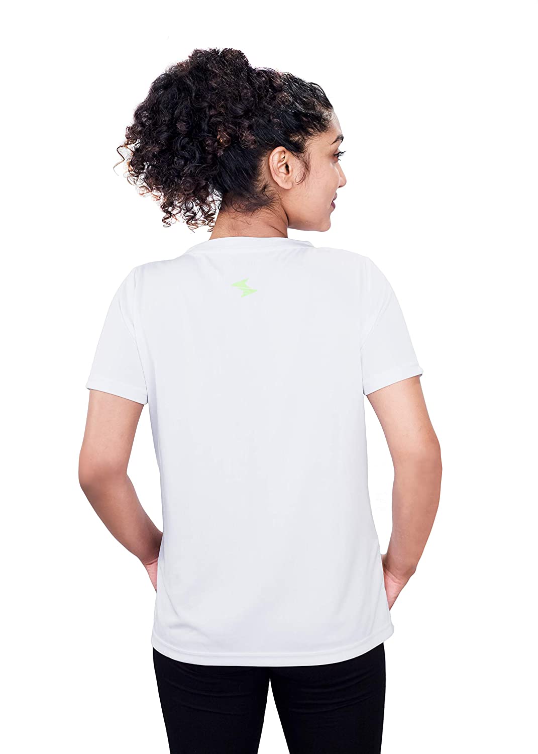 Uhane Women’s Gym Dri-Fit Work-Out Round Neck Loose Fit T-Shirt (White with Green Leaf Print) Short Sleeves Printed Top for Sports and Fitness