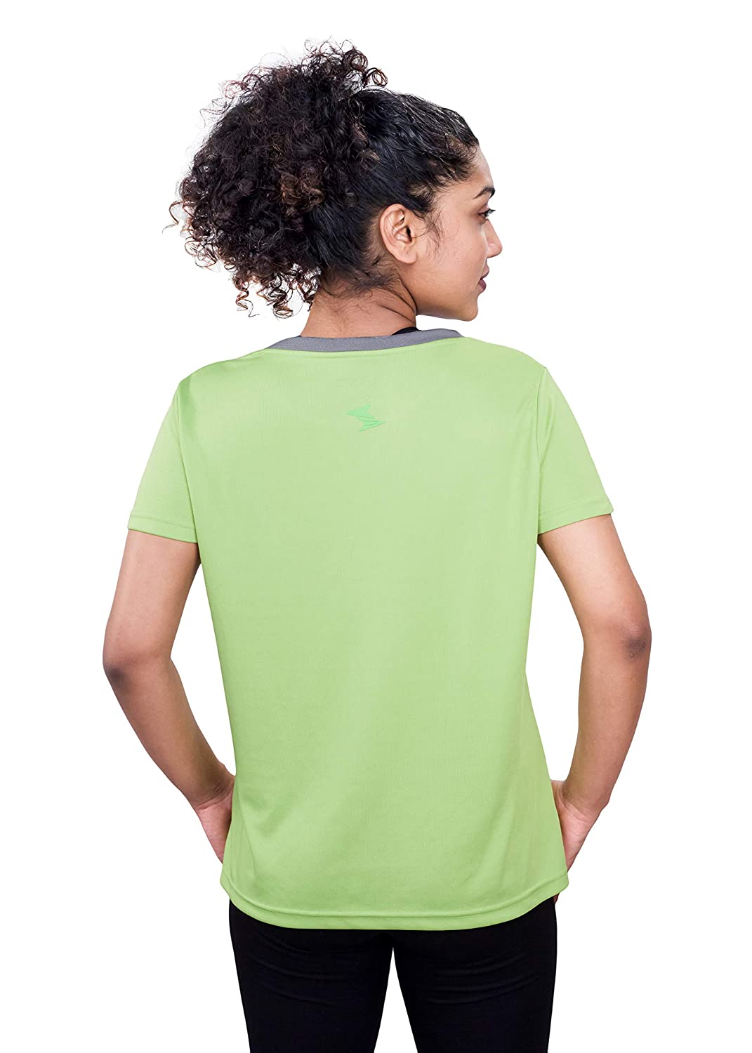 Uhane Women’s Gym Dri-Fit Work-Out Round Neck T-Shirt (Lemon Green) Extra Short Sleeves Top for Sports and Fitness