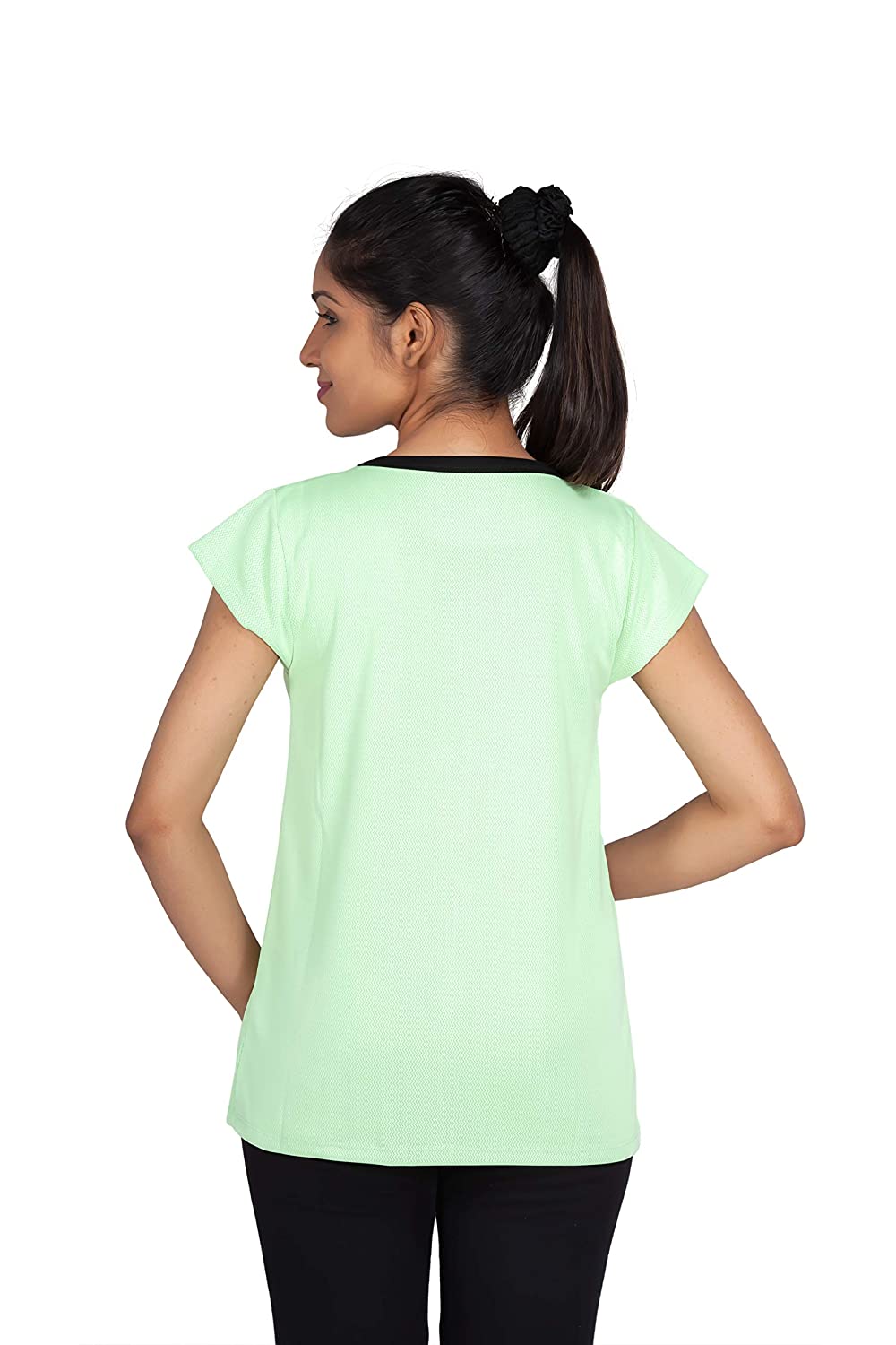 Uhane Women’s Gym Dri-Fit Work-Out Round Neck T-Shirt (Lemon Green) Extra Short Sleeves Top for Sports and Fitness